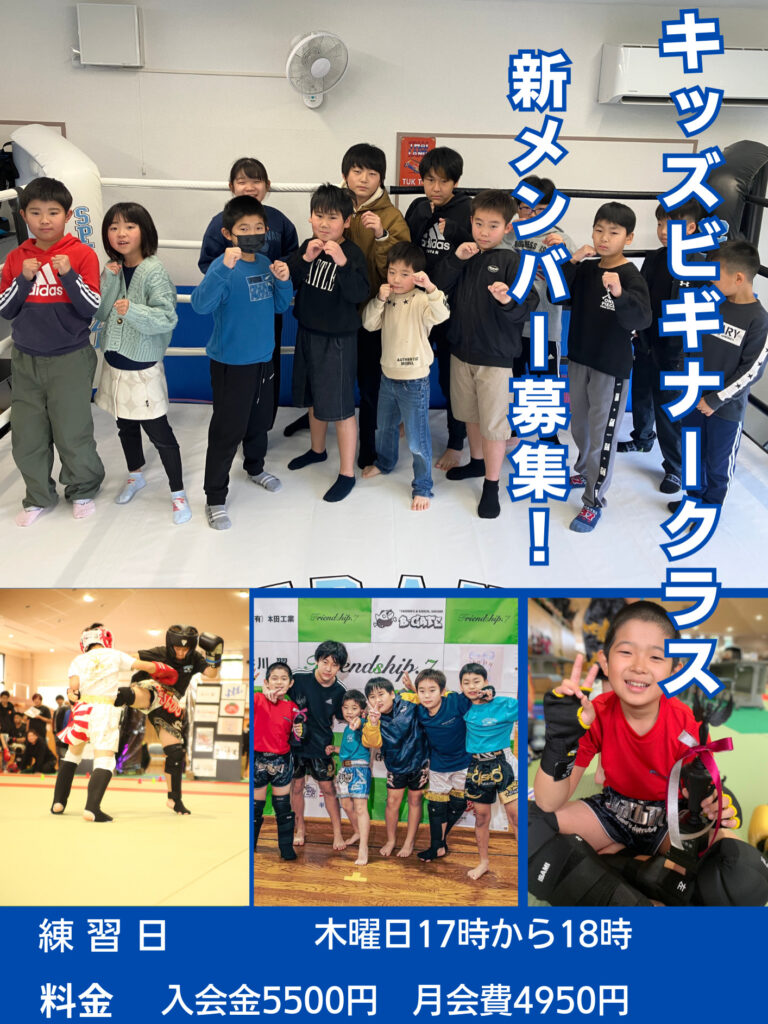 キッズビギナークラス新規会員募集!! 2026 1/20 お知らせ 2026年1月20日 定員に達しましたら打ち切らせて頂きます。 体験申し込みはお問い合わせ→公式LINEより受付しています。 お知らせ よかったらシェアしてね! URLをコピーしました! URLをコピーしました! あけましておめでとうございます この記事を書いた人 speranza 関連記事 あけましておめでとうございます 2026年1月10日 9月の予定表 2025年8月27日 Friendship 8 対戦カード 2025年8月8日 8月の予定表 2025年8月8日 7月の予定 2025年6月23日 6月の予定 2025年5月22日 練習スケジュール変更 2025年4月18日 キッズファイトクラス募集締切 2025年4月5日 コメント コメントする コメントをキャンセルコメント ※ 名前 ※ メール ※ サイト 次回のコメントで使用するためブラウザーに自分の名前、メールアドレス、サイトを保存する。